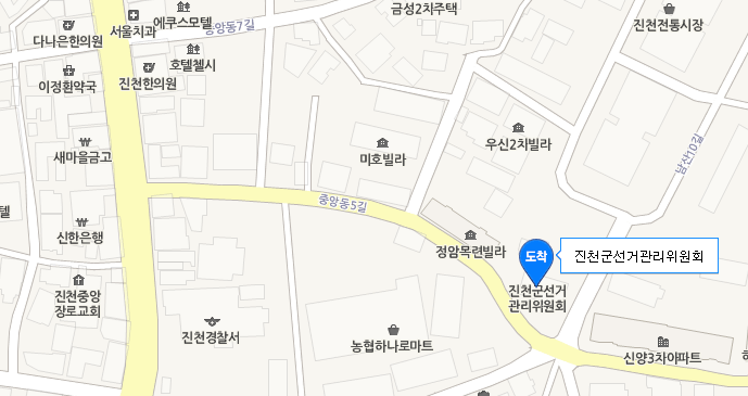 - 약 500m 직진 전방 좌측방면 진천군선거관리위원회