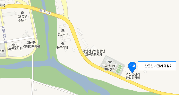 - 시계탑사거리에서 우회전후 800m 직진 후 좌회전 10m 앞 괴산군선거관리위원회