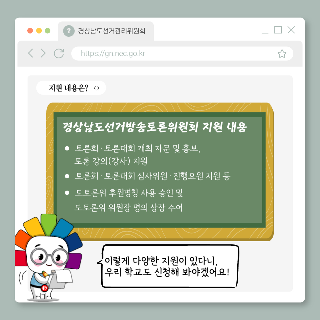 A.경상남도선거방송토론위원회에서는 청소년 중심 토론문화 활성화를 위하여