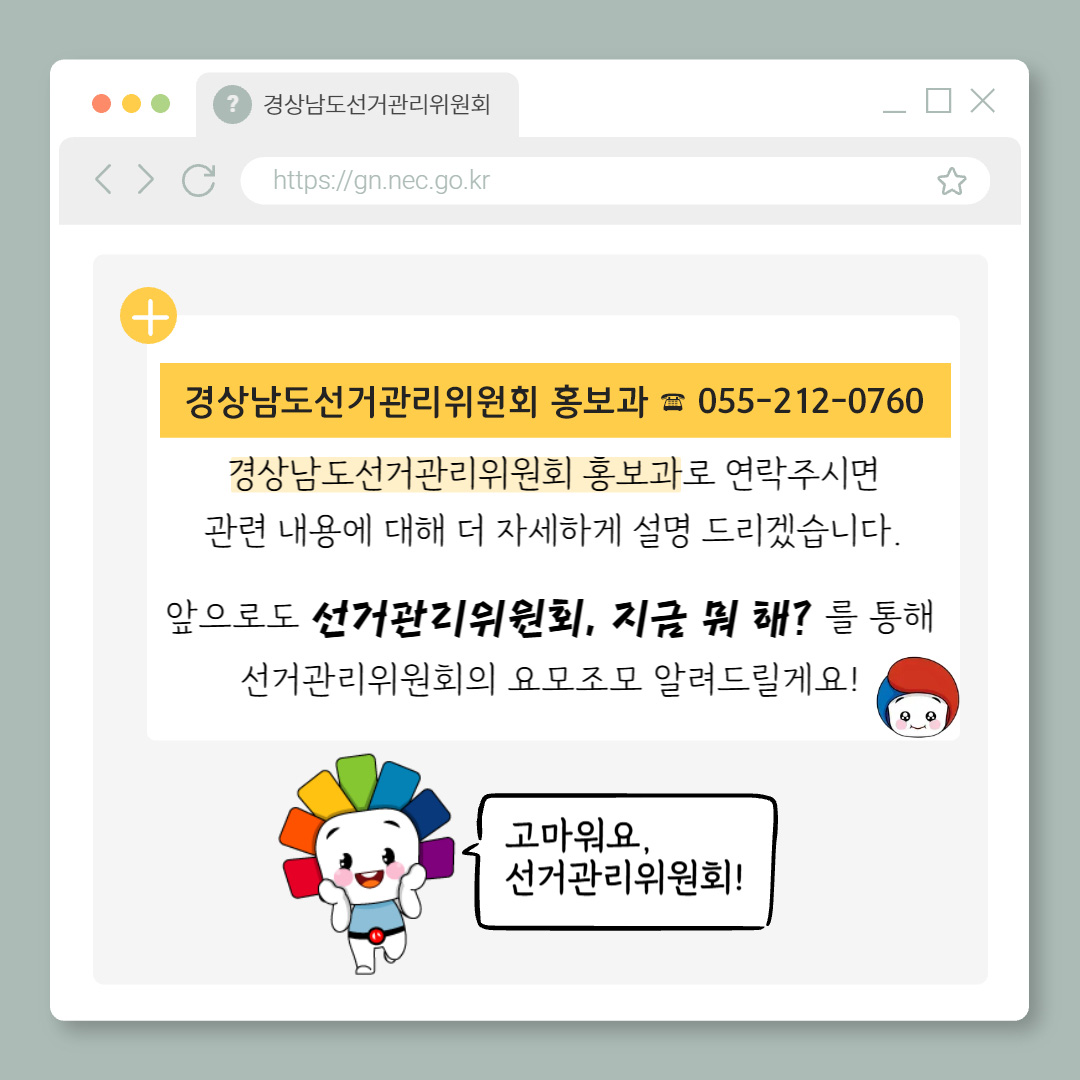 경상남도선거관리위원회 홍보과 전화번호: 055-212-0760