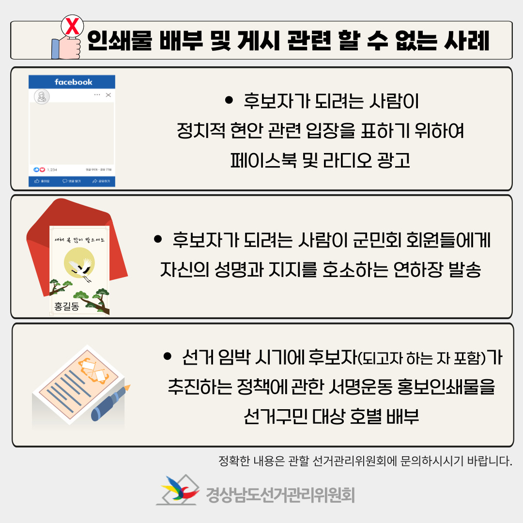 인쇄물 배부 및 게시 관련 할 수 없는 사례