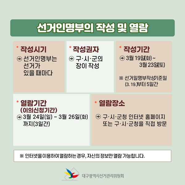 ※ 선거일명부작성기준일(3. 19.)부터 5일간