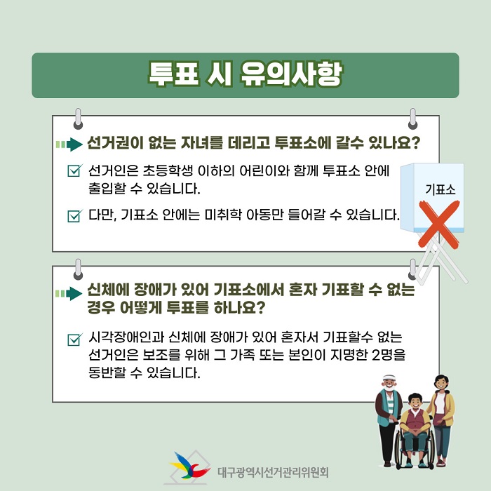 - 다만, 기표소 안에는 미취학 아동만 들어갈 수 있습니다.