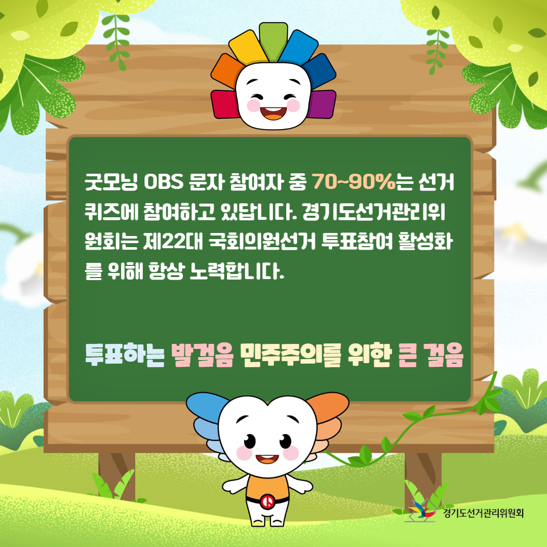 굿모닝 OBS 문자 참여자 중 70~90%는 선거퀴즈에 참여하고 있답니다.