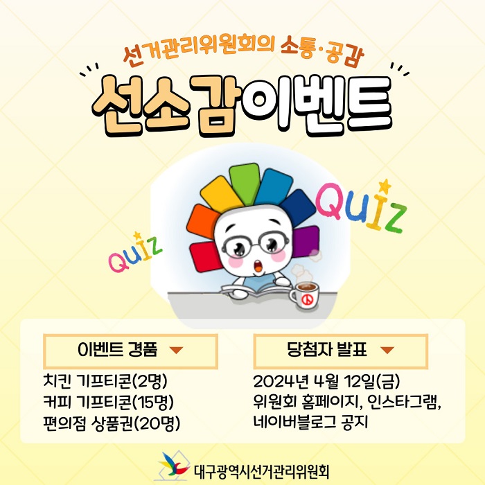 안녕하세요? 대구시선거관리위원회의 소통?공감을 담당하고 있는 선소감이벤트입니다.