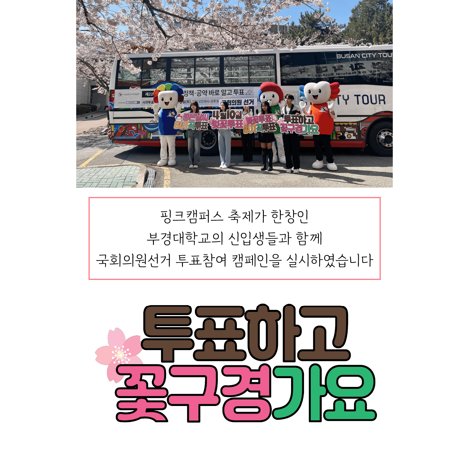 핑크캠퍼스 축제가 한창인 부경대학교 신입생들과 함께 국회의원선거 투표참여 캠페인을 실시하였습니다.