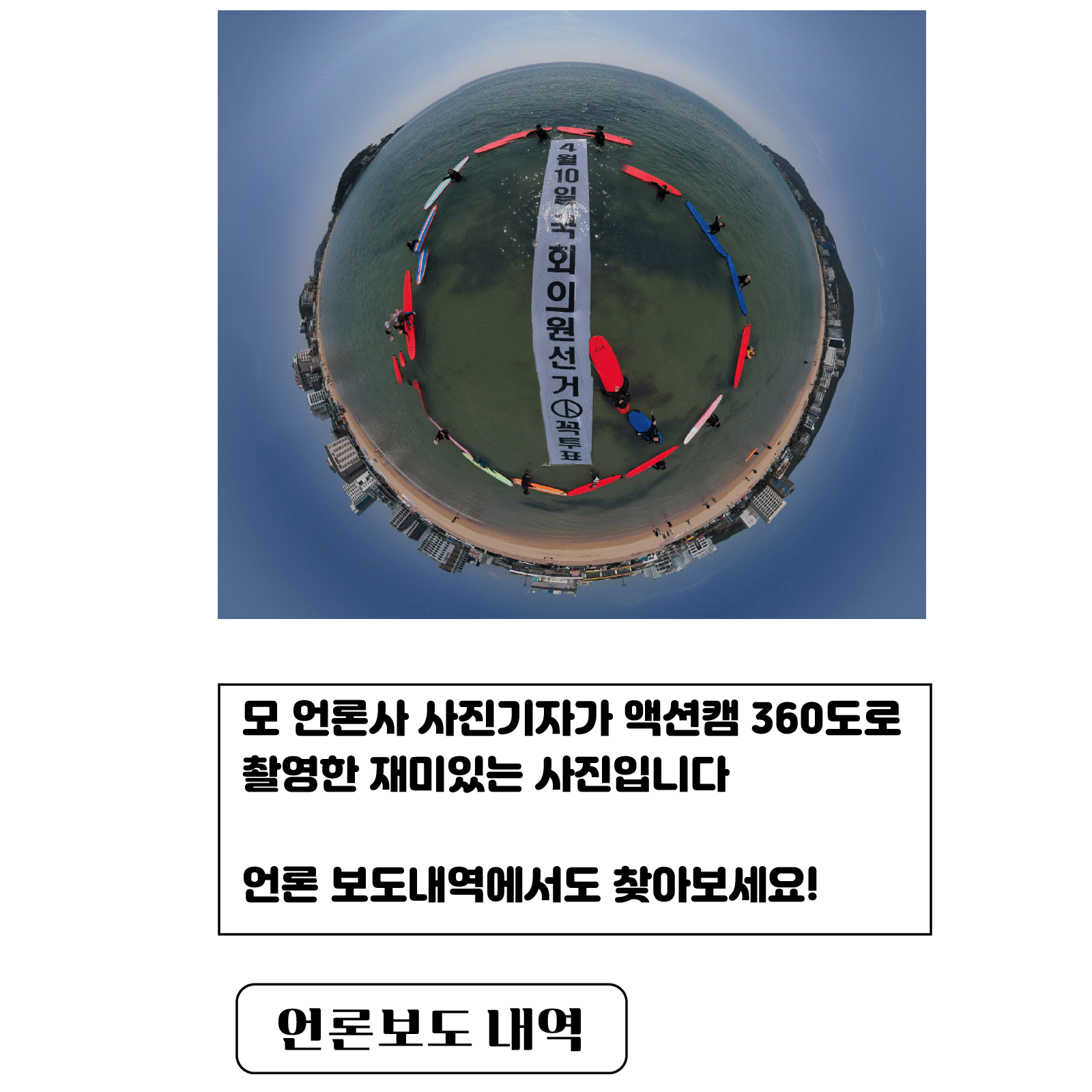 또한 모 언론사 사진기자가 액션캠 360도로 촬영한 재미있는 사진도 언론 보도내역에서 찾아보아요!