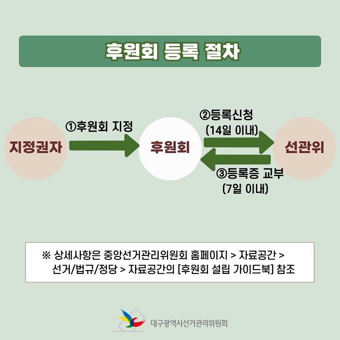 ※ 후원회 설립의 상세한 사항은 중앙선거관리위원회 홈페이지 > 자료공간 > 선거/법규/정당 >