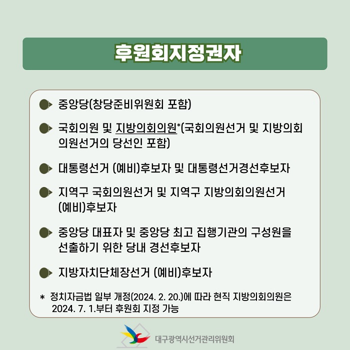 이번 카드뉴스에는 후원회와 후원금, 후원회 등록 절차, 후원회지정권자,