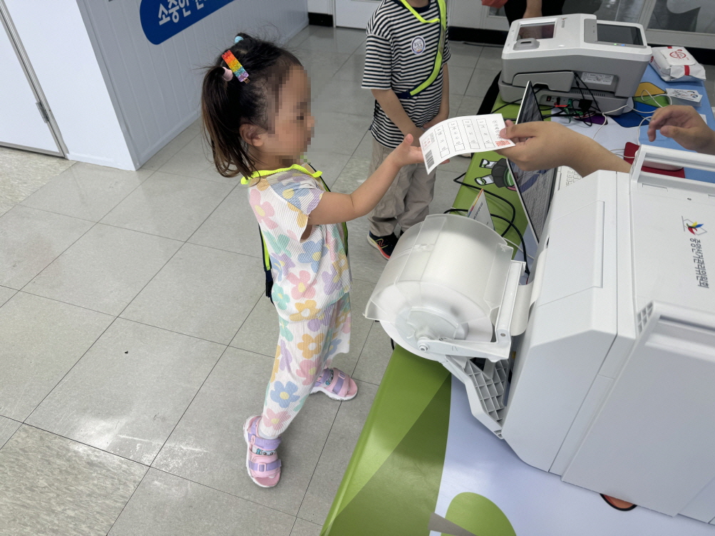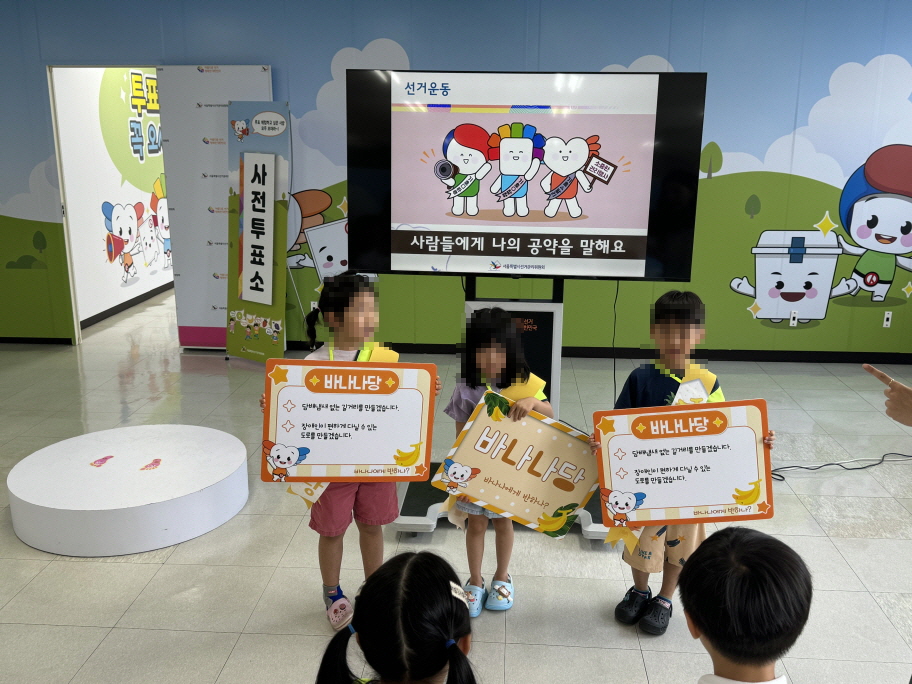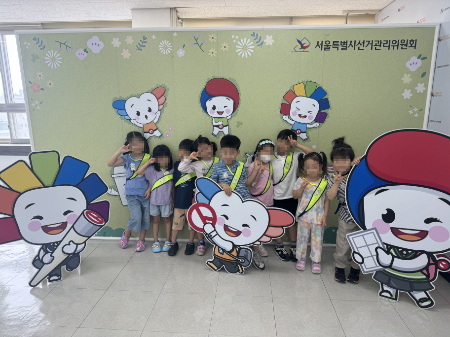2024. 6. 11.(화) 10:15 영등포구에 위치한 금융감독원어린이집에서 9명의 원아들이 서울특별시선거관리위원회 선거체험관을 방문하여, 약 1시간 동안 맞춤형 민주시민교육과 함께 선거운동, 사전투표, 개표의 순서로 체험활동을 하였습니다.