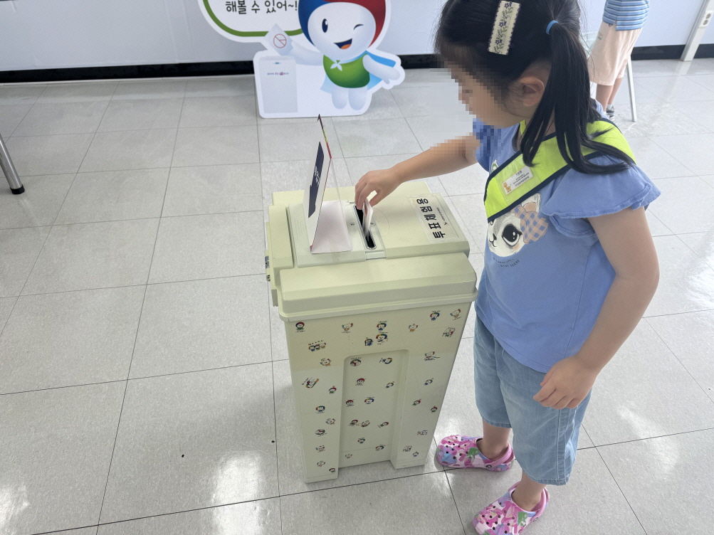 * 사진설명 : 기표를 마친 원아가 투표지를 투표함에 넣고 있다.