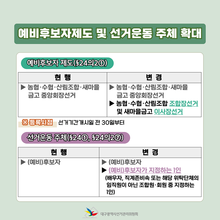 - 예비후보자 제도 및 선거운동 주체 확대