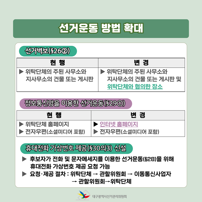 - 선거운동 방법 확대