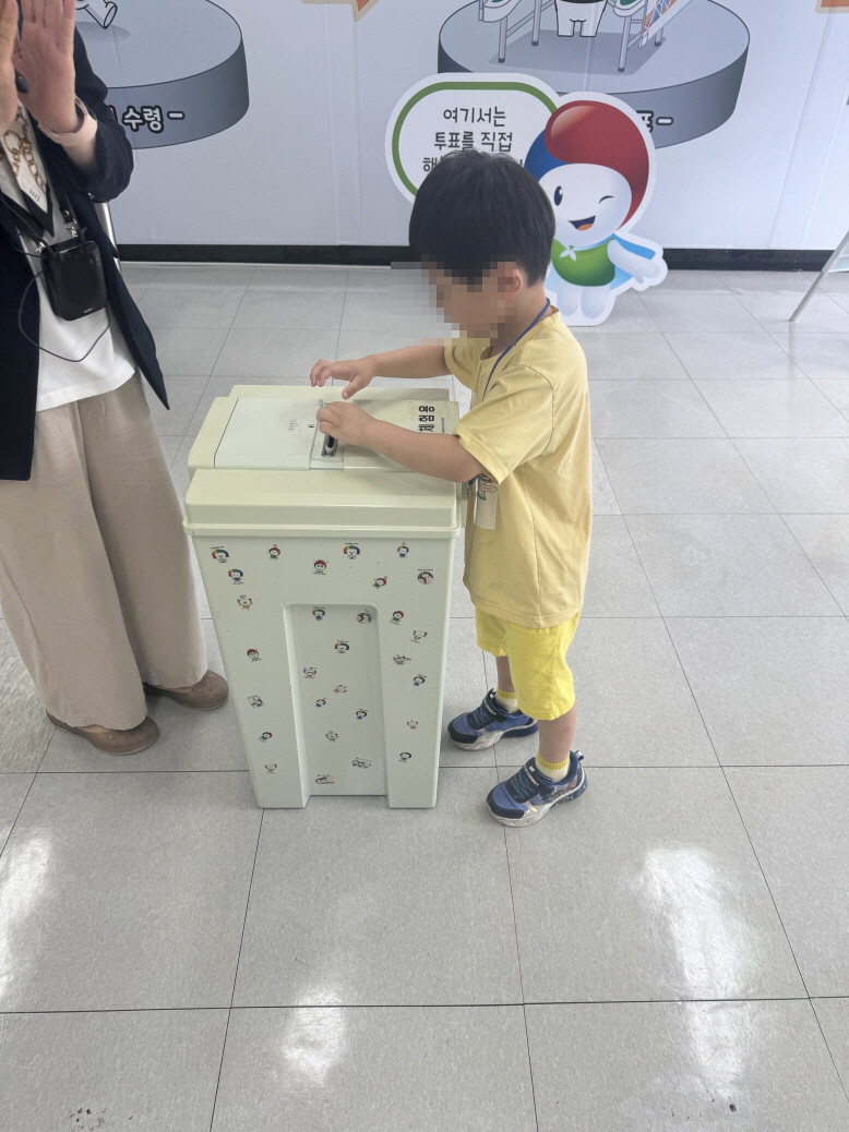 * 사진설명 : 기표를 마친 원아가 투표지를 투표함에 넣고 있다.