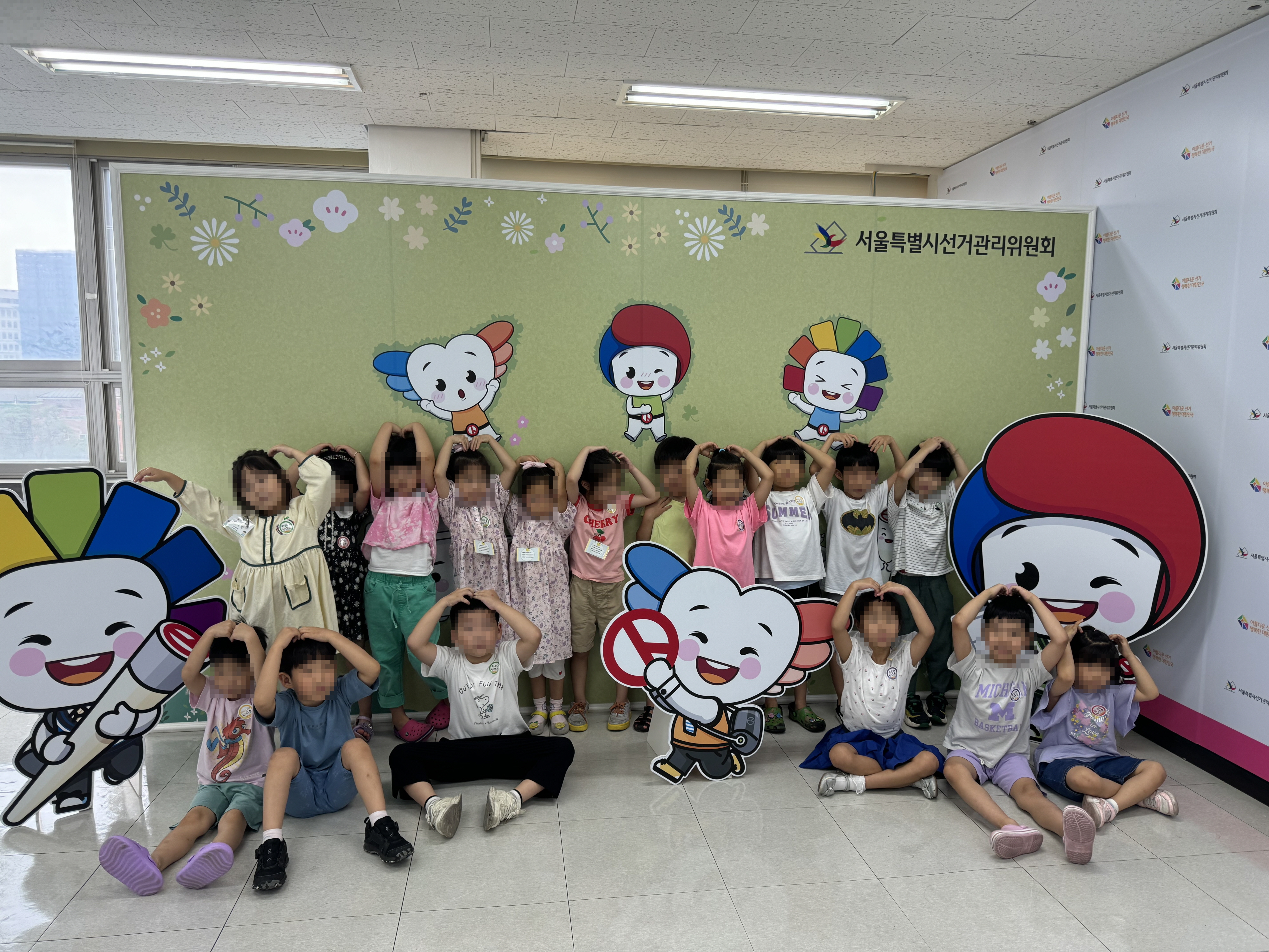 2024. 7. 5.(금) 10:00 성동구에 위치한 청구어린이집에서 17명의 원아들이 서울특별시선거관리위원회 선거체험관을 방문하여, 약 1시간 동안 맞춤형 민주시민교육과 함께 선거운동, 사전투표, 개표의 순서로 체험활동을 하였습니다.