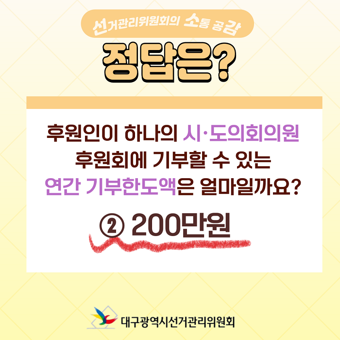 <후원인이 하나의 시도의회의원 후원회에 기부할 수 있는 연간 기부한도액은 얼마일까요?>