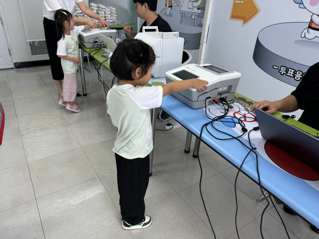 2024. 8. 1.(목) 10:30 성북구에 위치한 종암어린이집에서 27명의 원아들이 서울특별시선거관리위원회 선거체험관을 방문하여, 약 1시간 동안 맞춤형 민주시민교육과 함께 선거운동, 사전투표, 개표의 순서로 체험활동을 하였습니다.