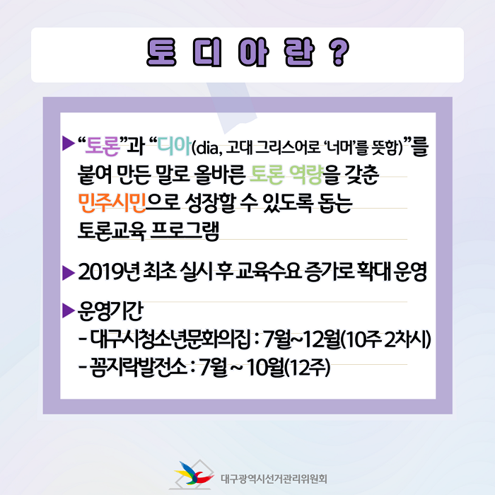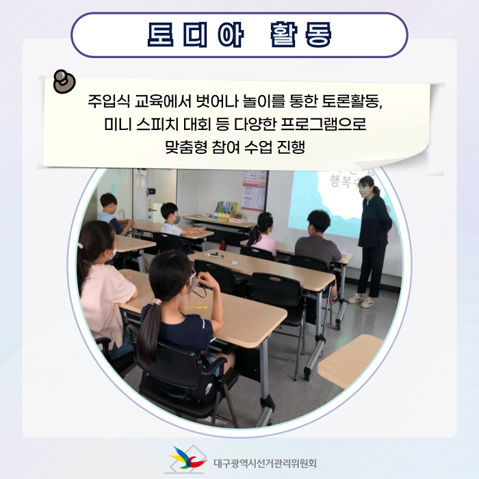 대구광역시선거관리위원회는 토디아를 통해 미래유권자인 청소년들이