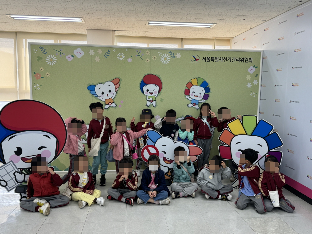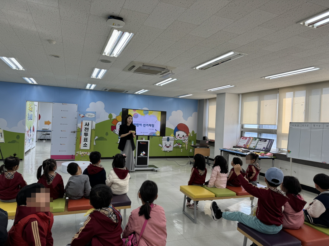 2024. 10. 31.(목) 10:30 동작구에 위치한 구립강남어린이집에서 23명의 원아들이 서울특별시선거관리위원회 선거체험관을 방문하여, 약 1시간 동안 맞춤형 민주시민교육과 함께 선거운동, 사전투표, 개표의 순서로 체험활동을 하였습니다.