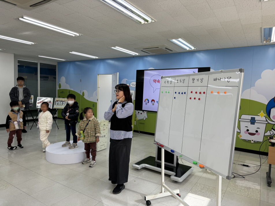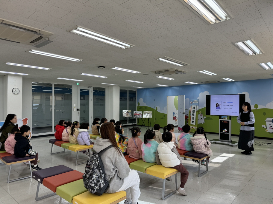 * 사진설명 :원아들이 서울특별시선거관리위원회 선거체험관 강의존에서 민주시민교육 강사의 강의를 경청하고 있다