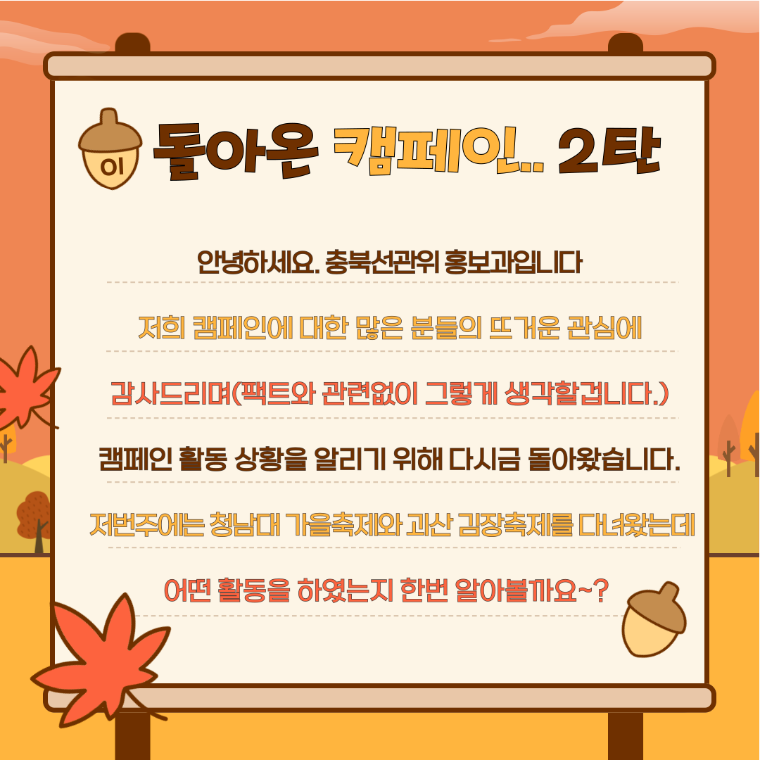 안녕하세요. 충북선관위 홍보과입니다 저희 캠페인에 대한 많은 분들의 뜨거운 관심에