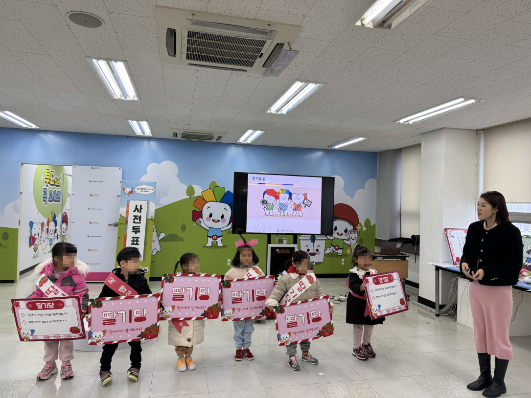 2024. 11. 27.(수) 10:30 송파구에 위치한 석촌새싹어린이집에서 23명의 원아들이 서울특별시선거관리위원회 선거체험관을 방문하여, 약 1시간 동안 맞춤형 민주시민교육과 함께 선거운동, 사전투표, 개표의 순서로 체험활동을 하였습니다.