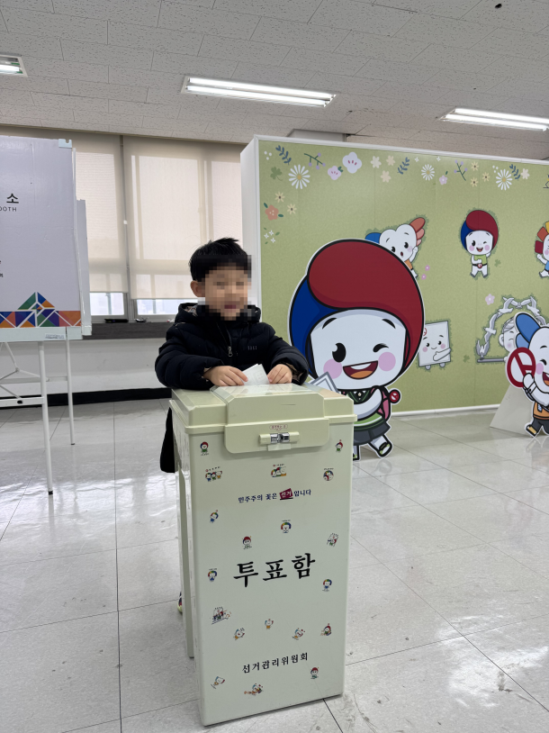 * 사진설명 : 체험존에서 한 원아가 투표를 마치고 투표함에 투표지를 넣고 있다.