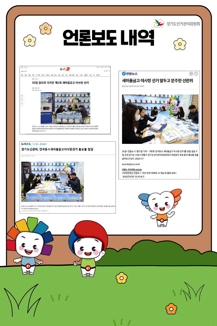 - 내용 : 제1회 전국동시새마을금고이사장선거 홍보 활동을 위한 관련 홍보물 점검