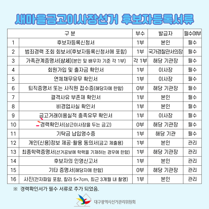 이번 주제는 "새마을금고이사장선거 후보자 등록"입니다.